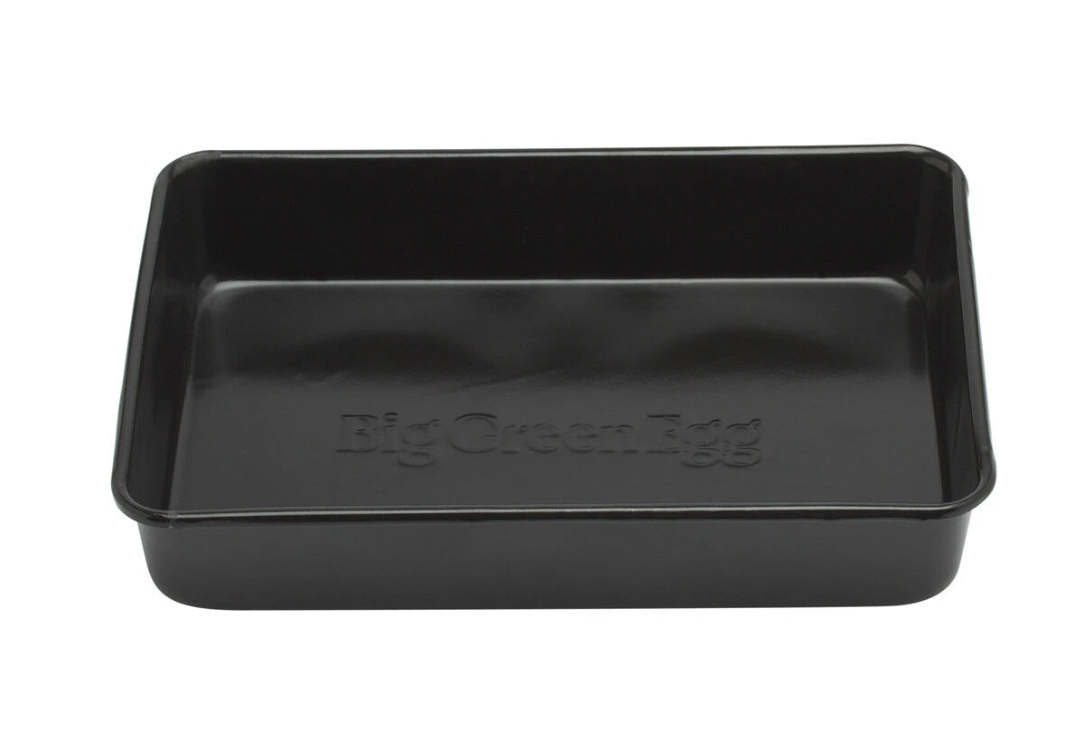 De Big Green Egg druippan is gemaakt van porselein-geëmailleerd staal. De pan is 33 bij 23 cm groot en 5 cm hoog. De druippan is goed te combineren met de Big Green Egg V-Rack. Gebruik als lekbak of als braadslede.
