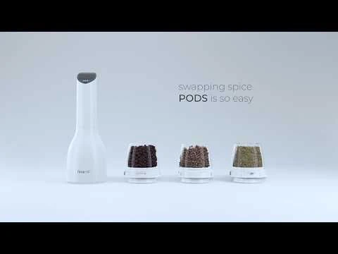 De Finamill All-In-One kruidenmolen is de makkelijkste manier om kruiden van alle soorten en maten te malen. De molen heeft een lengte van 22,7 cm, een diameter van 8,6 cm en komt met twee Pro Plus Pods. Met de Pro Plus Pods maalt u alledaagse en zachtere kruiden als zout, zaden of geroosterde knoflook. Door de Finamill op een pod te drukken, klikt deze vast en kan deze gelijk gebruikt worden voor het malen met maar één druk op de knop. Wanneer de Finamill weer naar beneden gedrukt wordt, laat de pod los en kunt u deze wisselen.