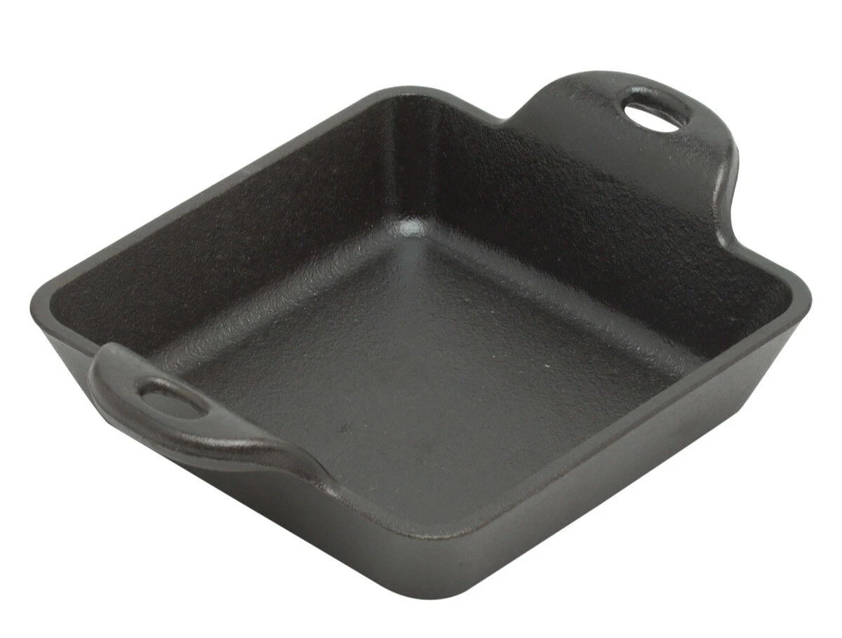 De Lodge Logic vierkante serveerschaal is gemaakt van ongeëmailleerd gietijzer en heeft een afmeting van 12,7 x 12,7 x 2,7 cm (l x b x h). De schaal is te gebruiken op alle hittebronnen, inclusief de barbecue, de oven en open vuur. Gebruik de schaal voor het bereiden en serveren van kleine gerechten.