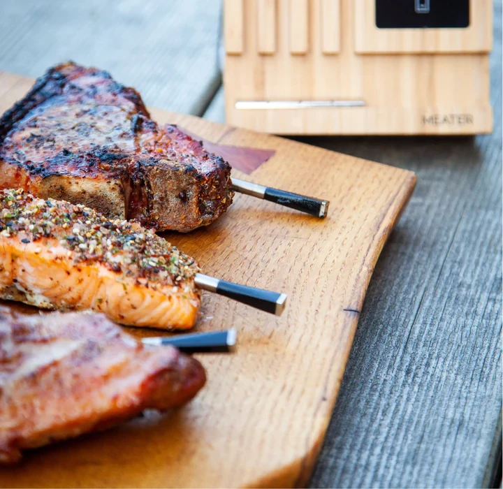De Meater Block heeft een modern design gemaakt van echt hout zodat deze mooi past in uw keuken of tuin. Uiteraard kunt u 4 Meaters gelijktijdig gebruiken in verschillende gerechten, stukken vlees die allen een verschillende kern temperatuur behoeven en of een langere of kortere bereidingstijd. Door middel van het Touch Screen op het Block kunt u de verschillende gerechten eenvoudig stapsgewijs instellen.