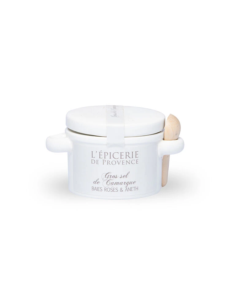 De Oldenhof L’Épicerie De Provence Gros de Sel De Camargue met rode bessen en dille is een zeezout met de smaken van rode peperbessen en dille. Het potje bevat 120 gram.